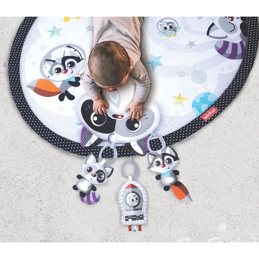 Levehető játékhidakkal rendelkezik, könnyen összecsukható és csomagolható. Mosógépben mosható.