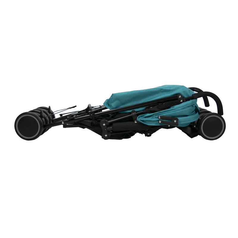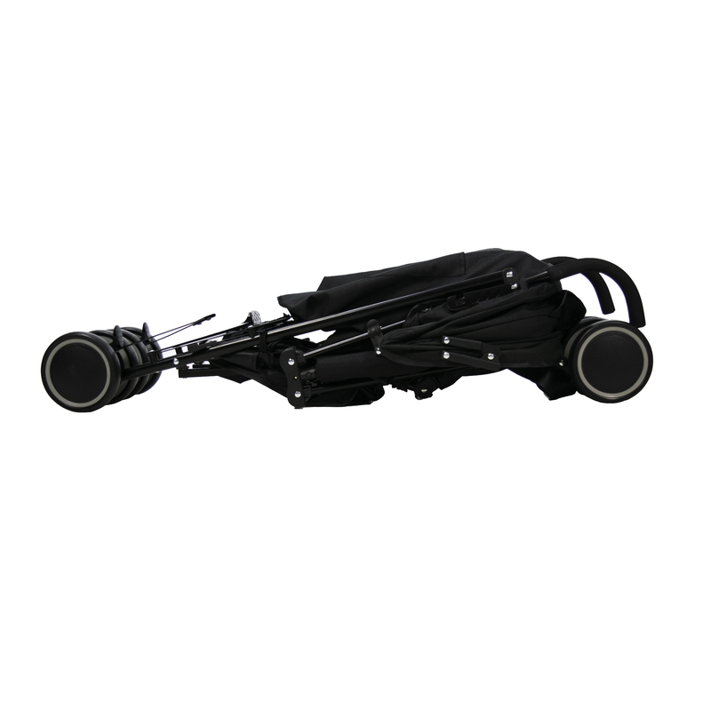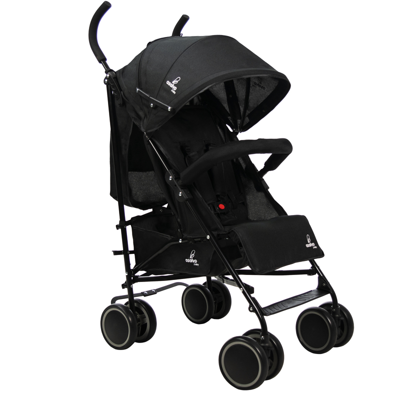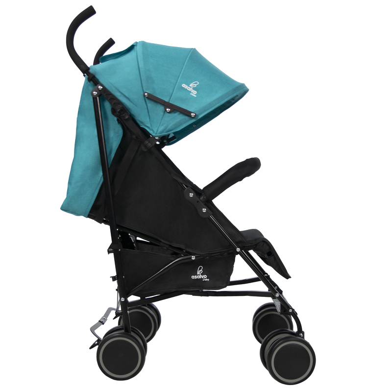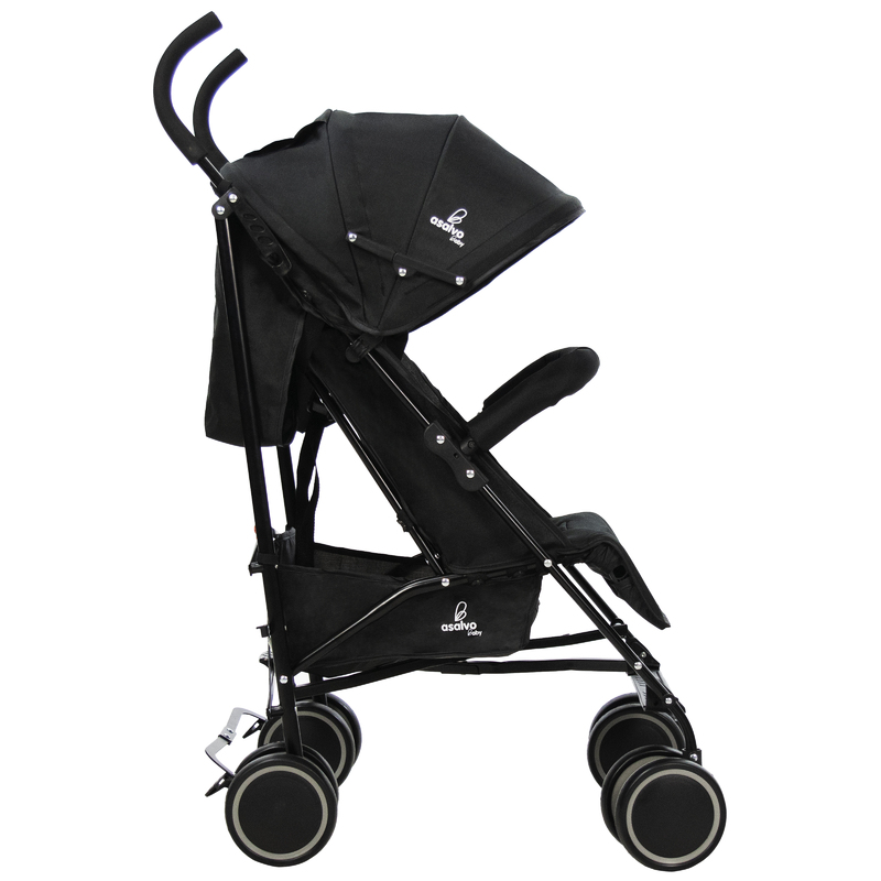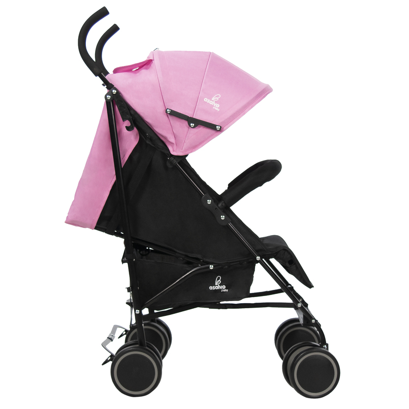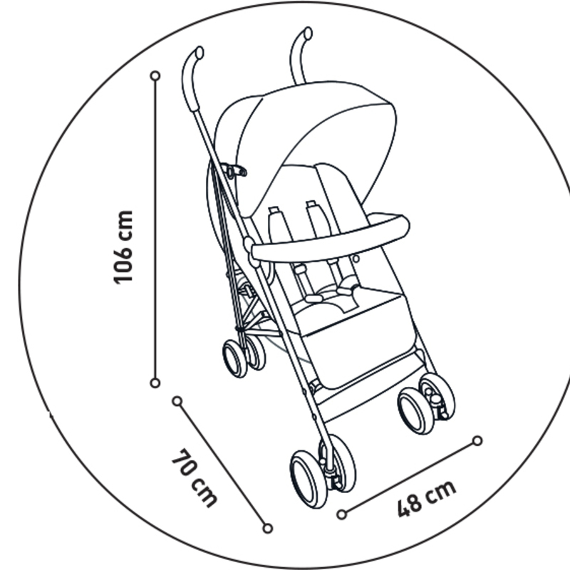 Könnyűszerkezetes fémvázas, esernyő formára csukható sport babakocsi, puha tolófogantyúkkal, kapaszkodókarral.