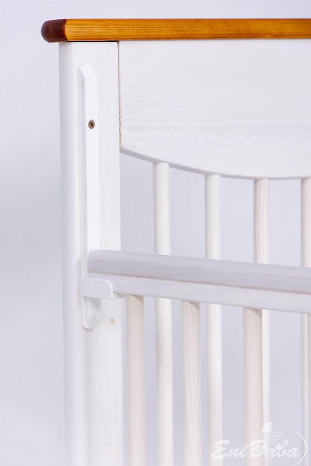 A LEO kiságy minősített erdőkből származó fenyőfából készül, gondosan válogatott tömörfa a termék tartóssága.