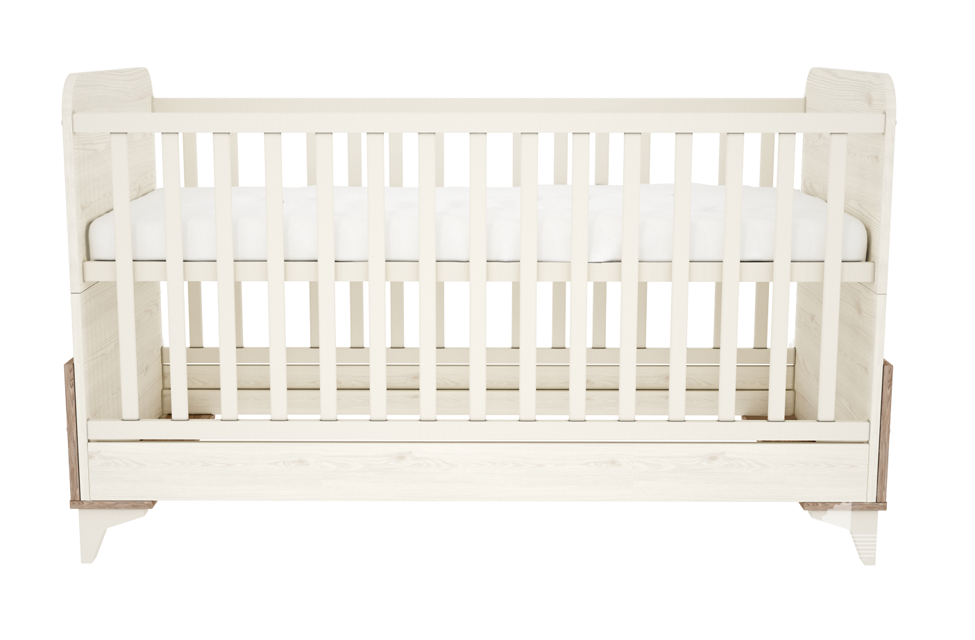 • A kiságy két oldalt rácsos, két végén pedig zárt részekkel egy letisztult és elegáns eleme termékcsaládunknak.