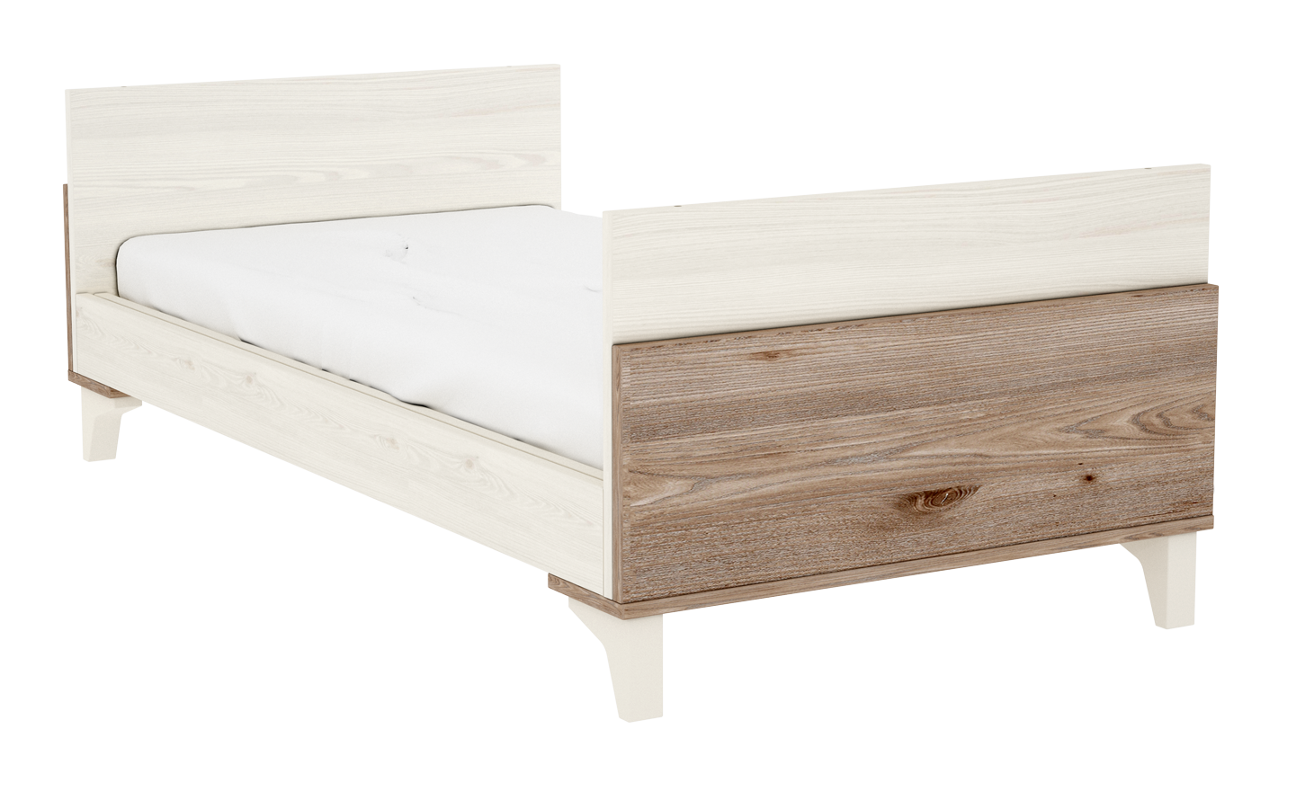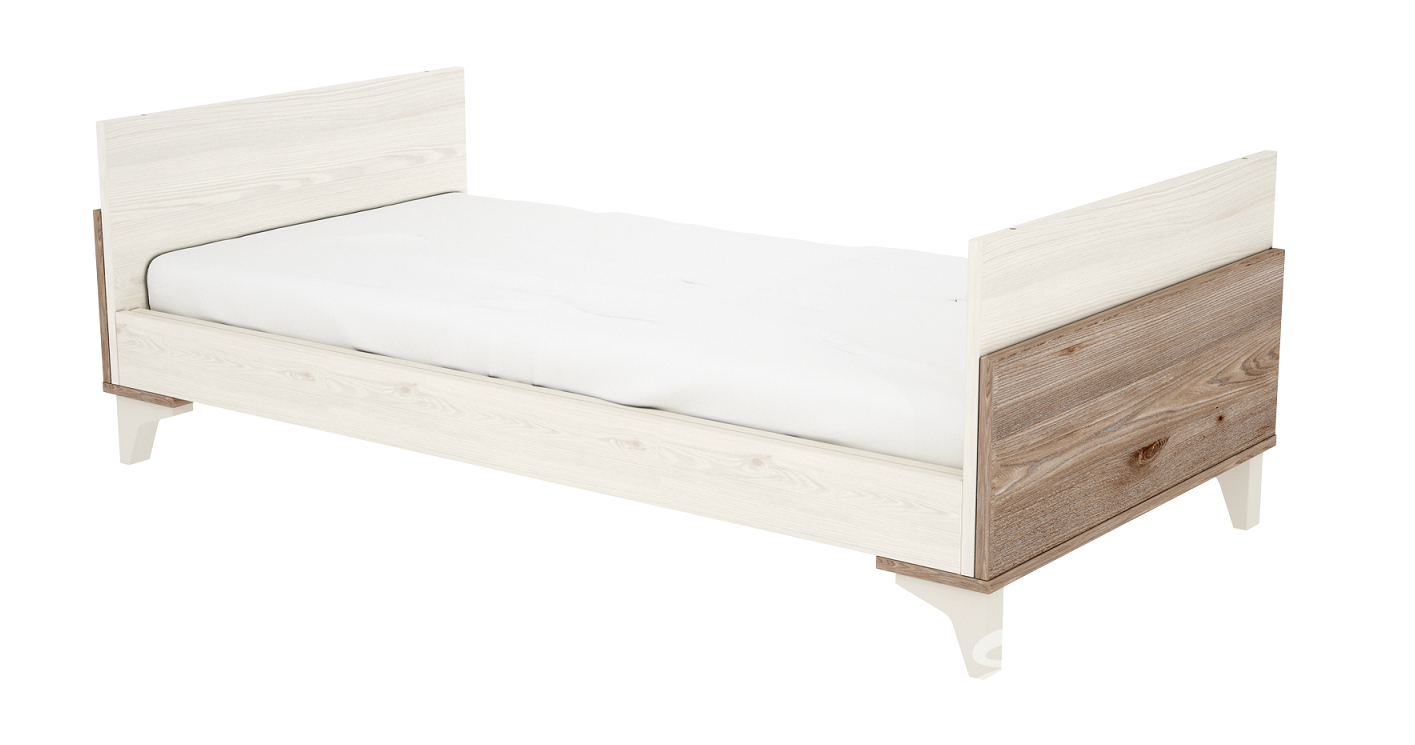 • A kiságyból az oldalrácsok és íves fejvégek eltávolítása után egy ifjúsági heverőt kapunk.
