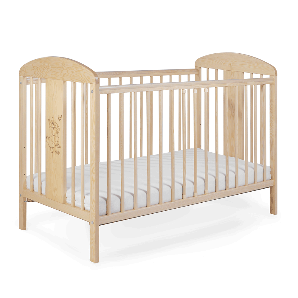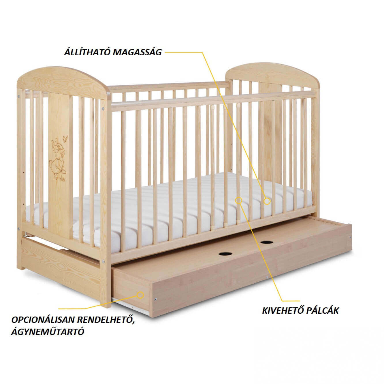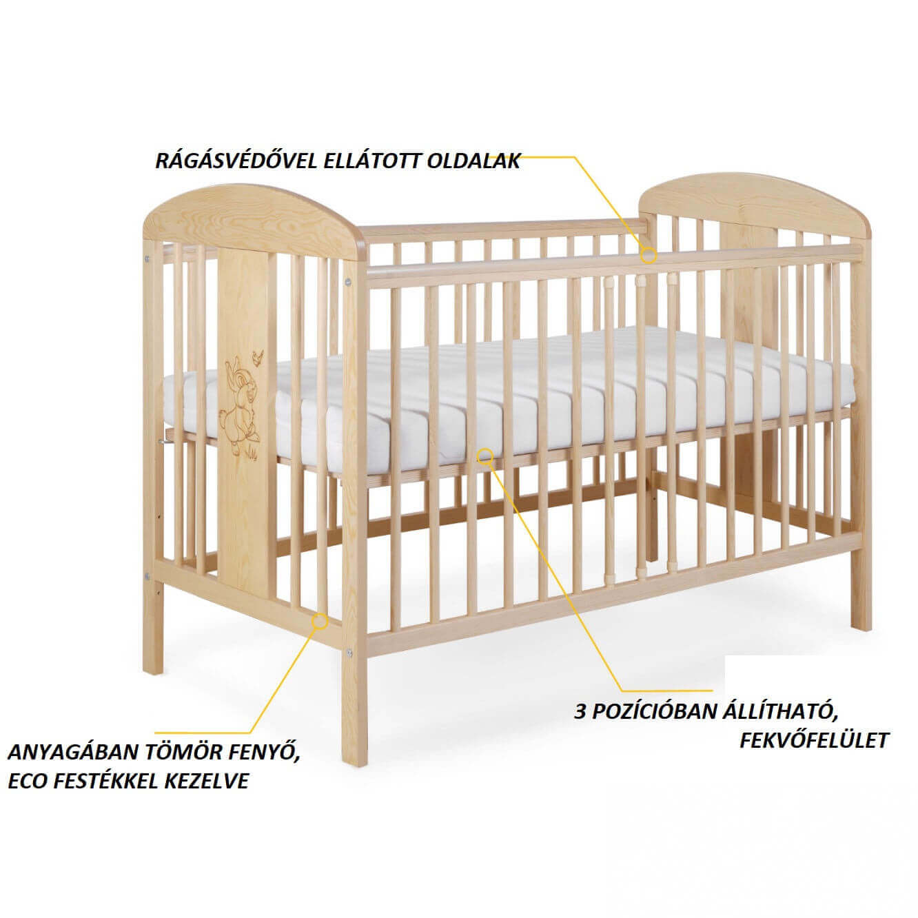 • Megerősített, robusztus kiságy, tömör fenyőből készült.