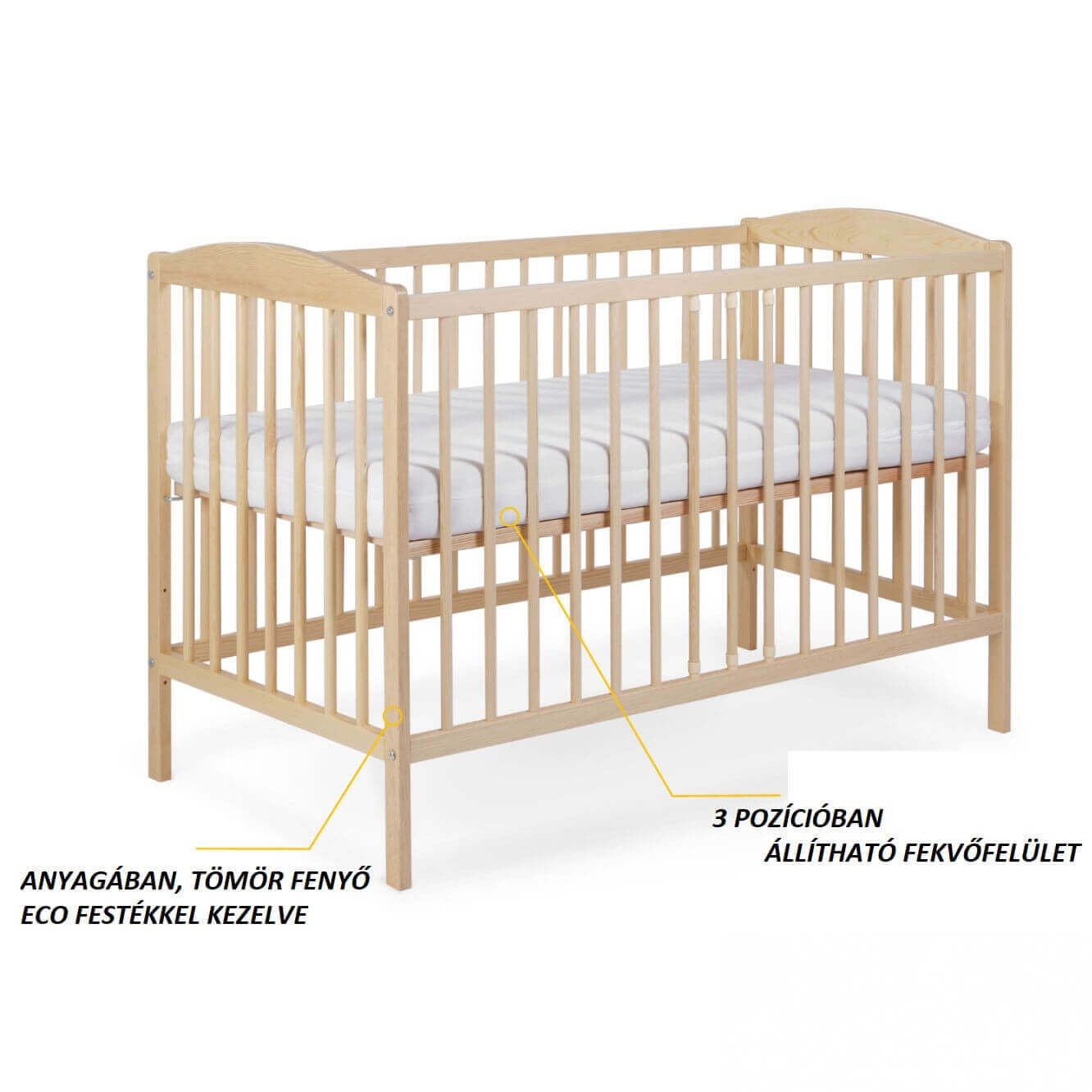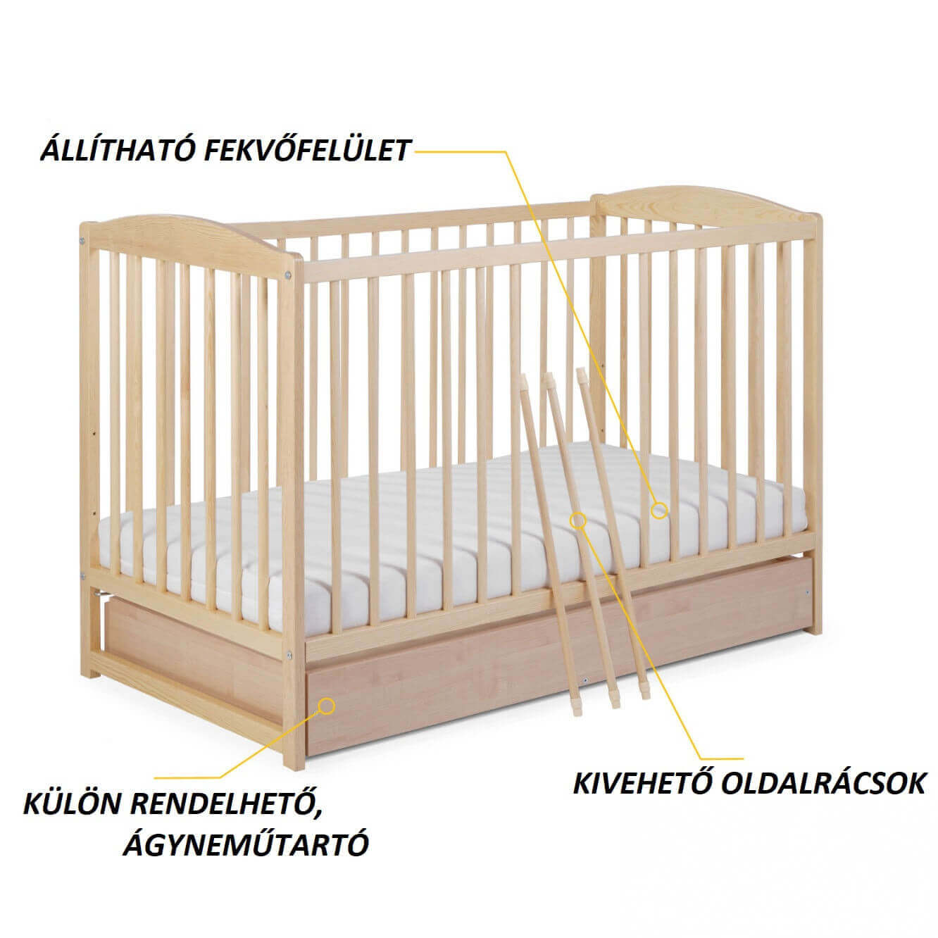 • Megerősített, robusztus kiságy, tömör fenyőből készült.